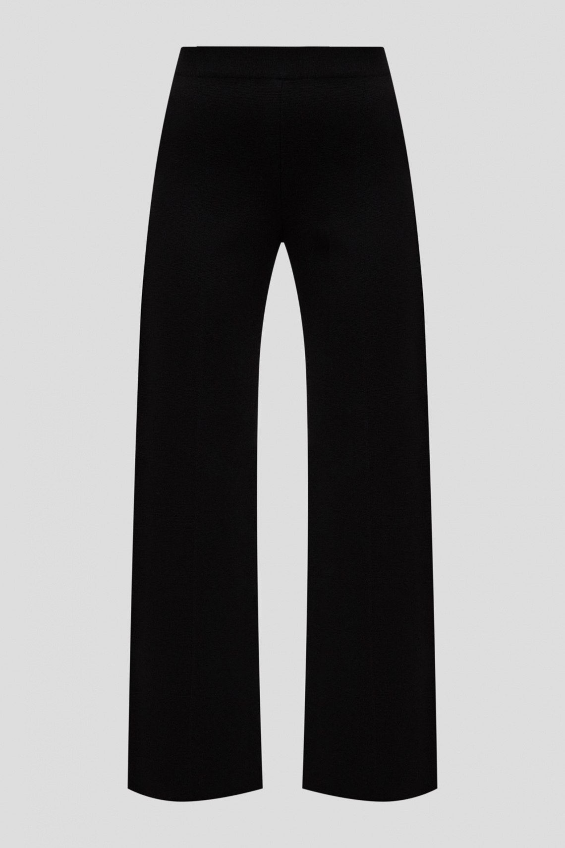 Женские черные шерстяные брюки от Maerz (Маерз). Классическая длина, высокая посадка, эластичная резинка на поясе, прямой силуэт. Измерения: обхват пояса: для размера 36 - 74 см, обхват бедер: для размера 36 - 90 см, длина штанины: для размера 36 - 100 см, длина по шаговому шву: для размера 36 - 72 см