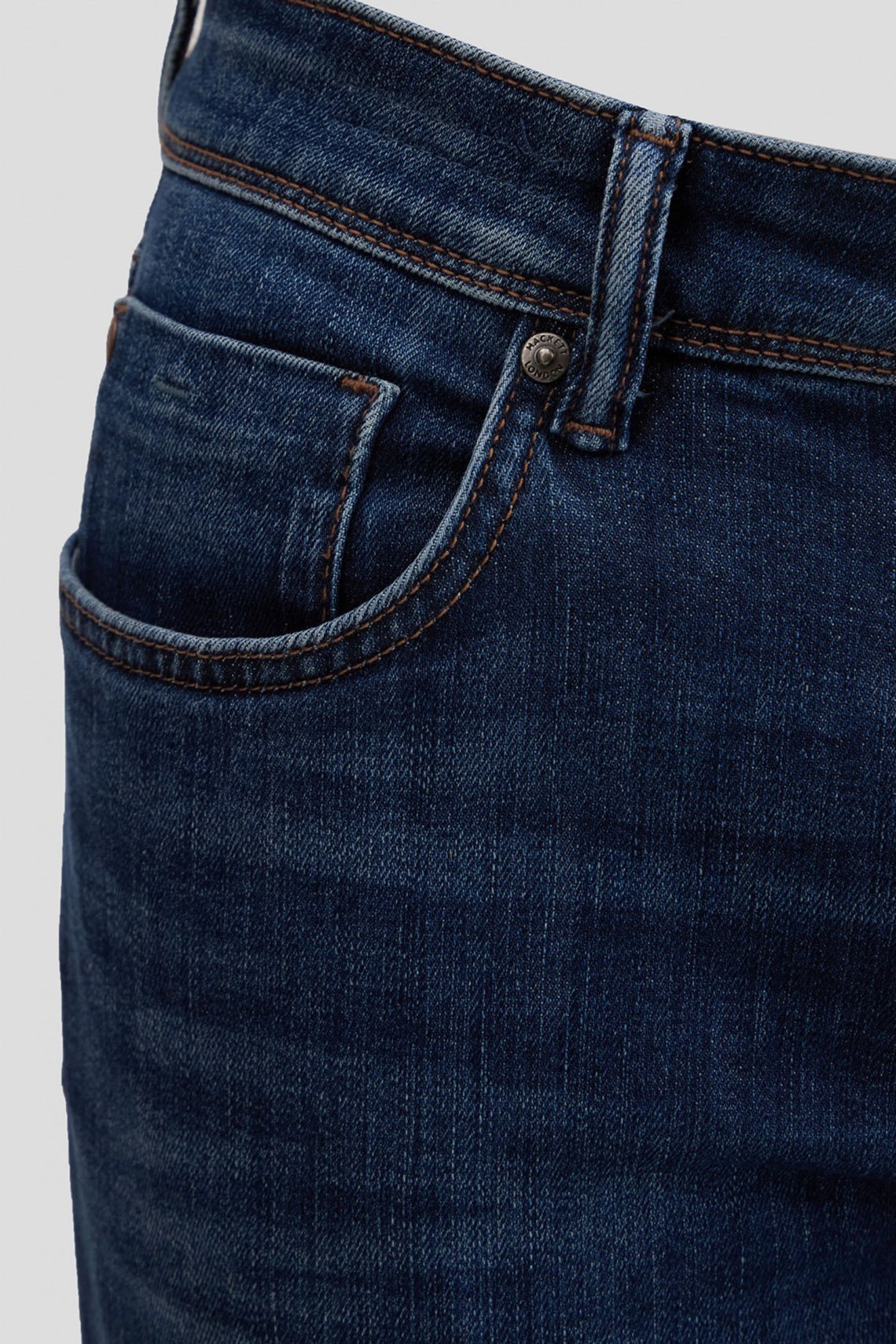 Мужские темно-синие джинсы от Hackett (Хаккетт). Пяти-карманная модель, пояс с петлями для ремня, нашивка с логотипом сзади на поясе, зауженный фасон, полная длина. Обхват пояса: для размера 32 - 82 см, обхват бедер: для размера 32 - 100 см, длина штанины: для размера 32 - 102 см, длина по шаговому шву: для размера 32- 77 см