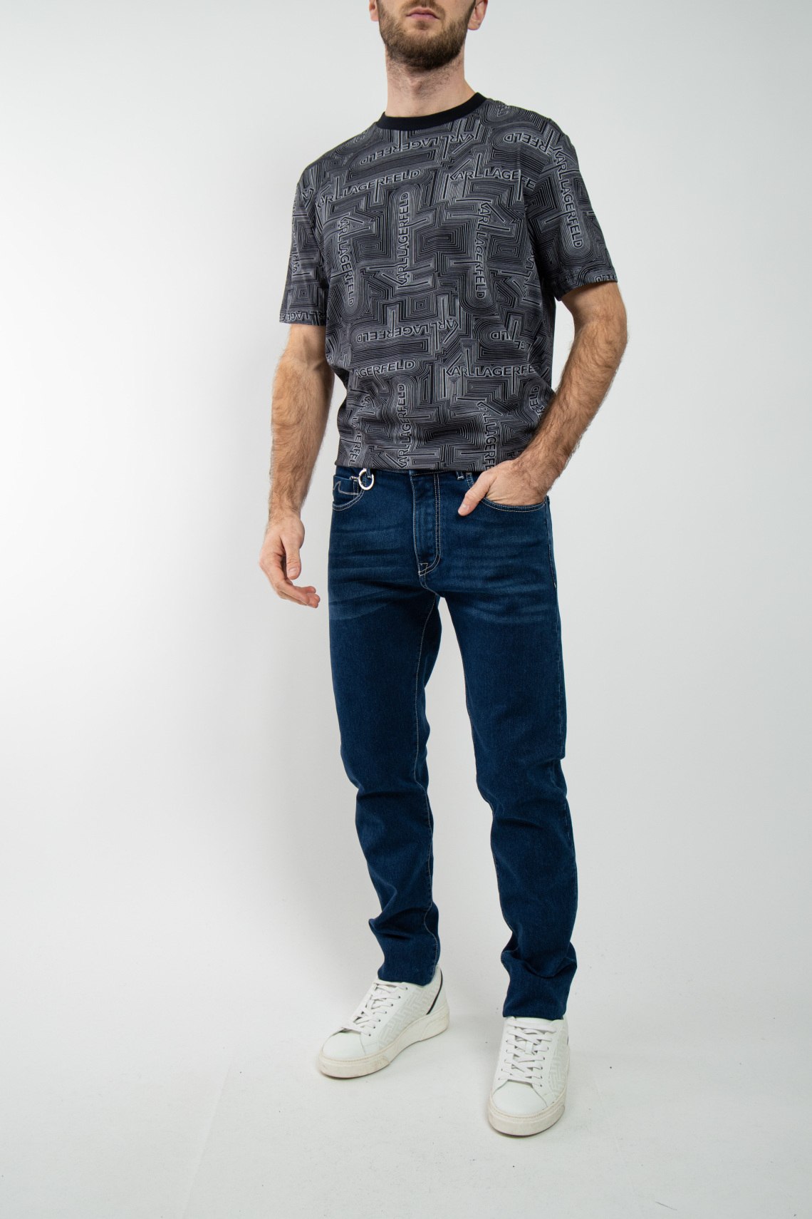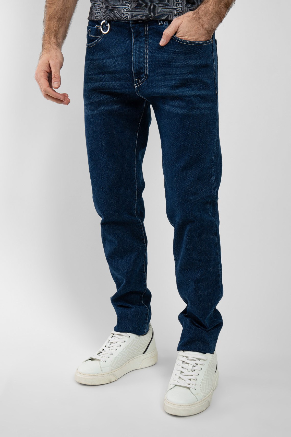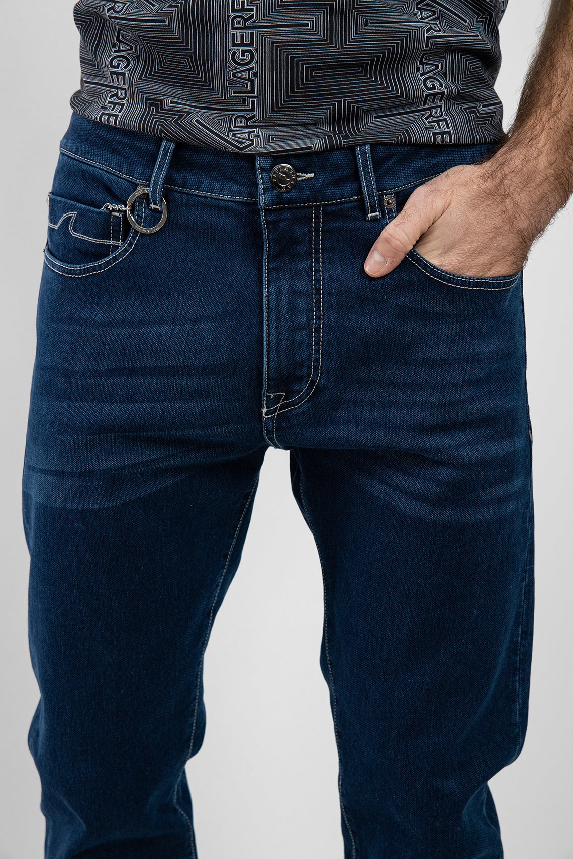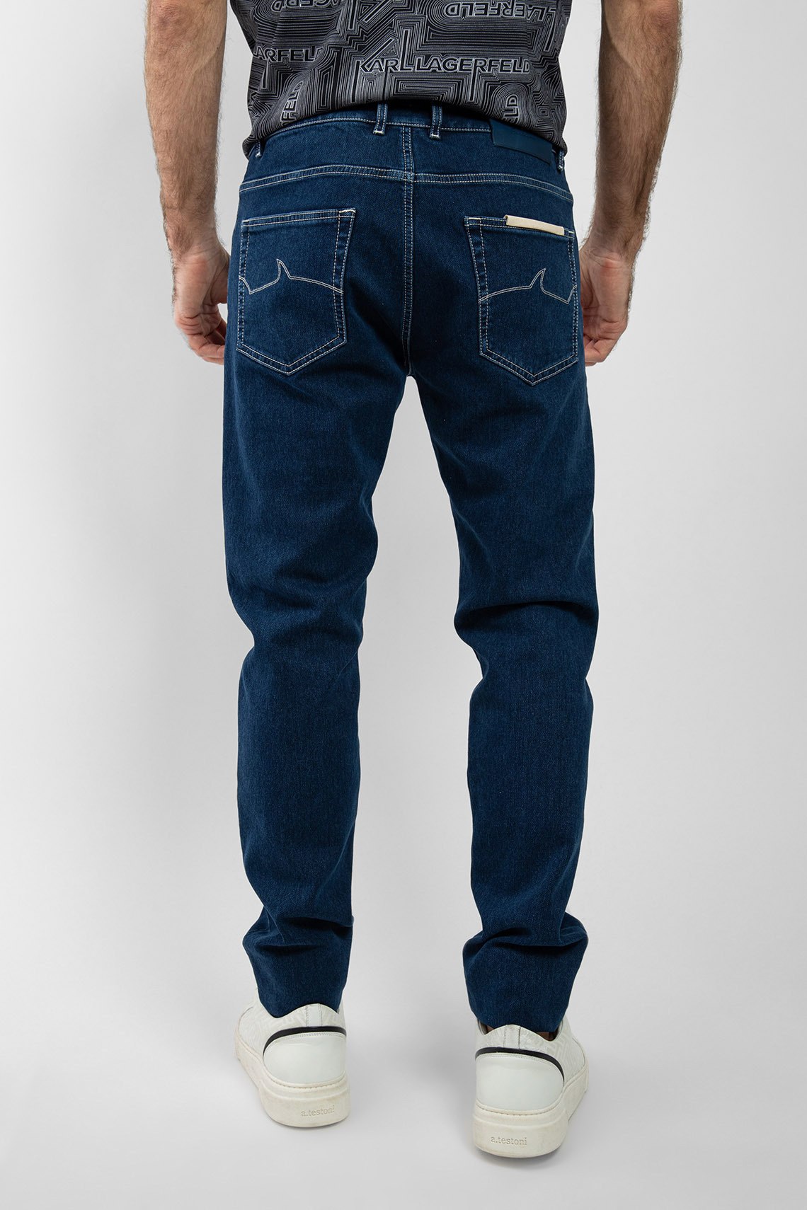 Мужские темно-синие джинсы из хлопкового микса от Paul & Shark (Пол энд Шарк). Классическая длина, средняя посадка, застежка на молнию и пуговицу, пять карманов, петли в поясе для ремня, патч-лого, брендированный брелок