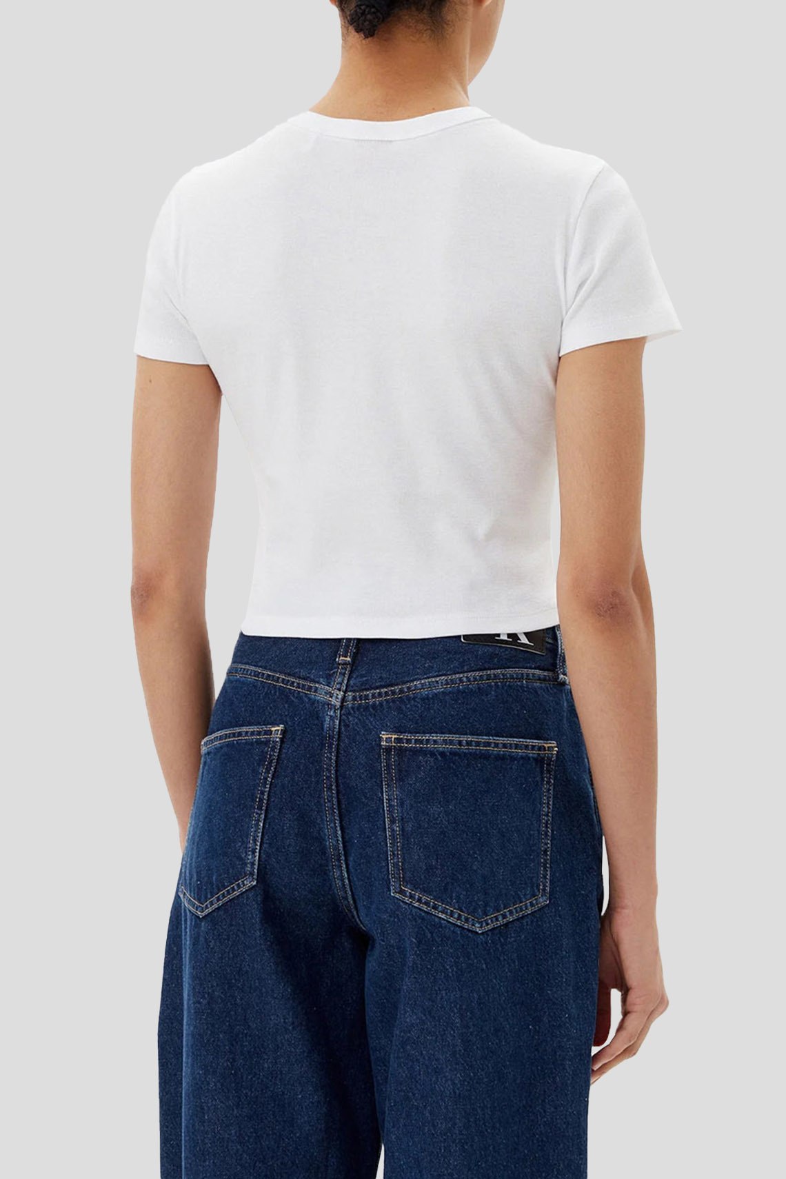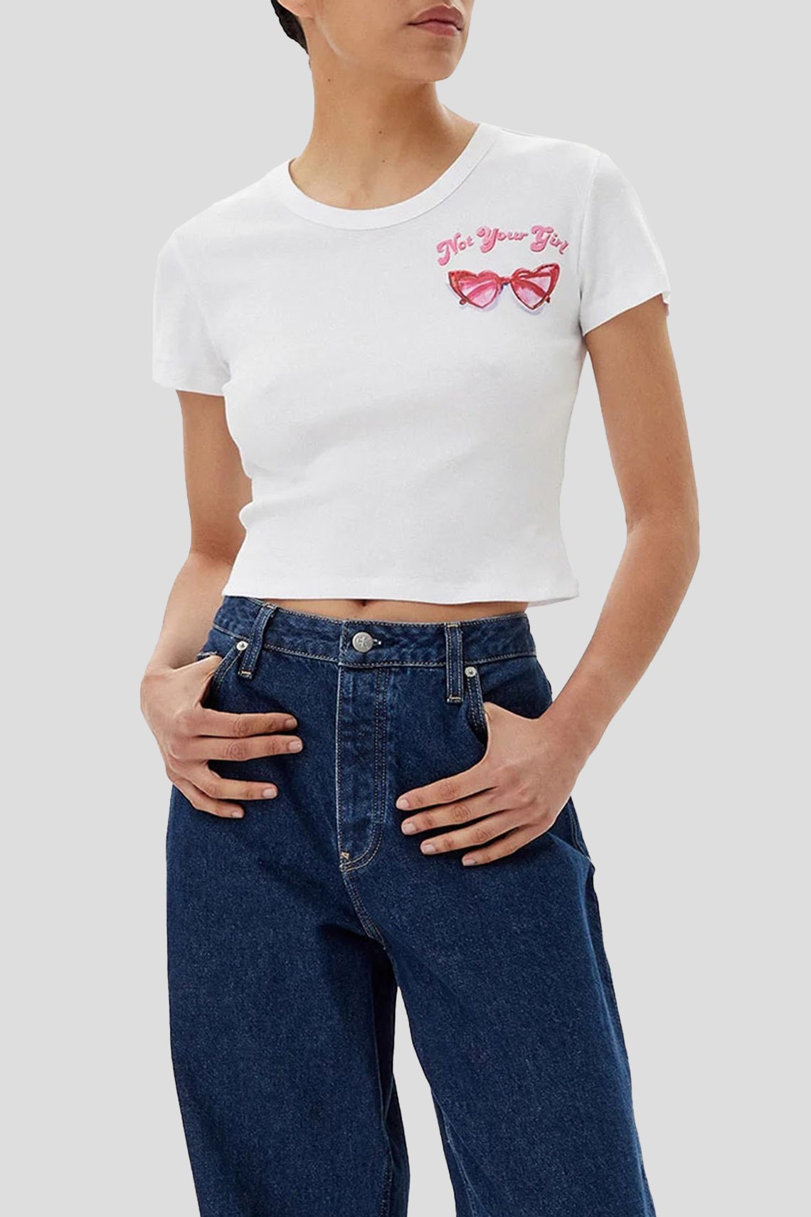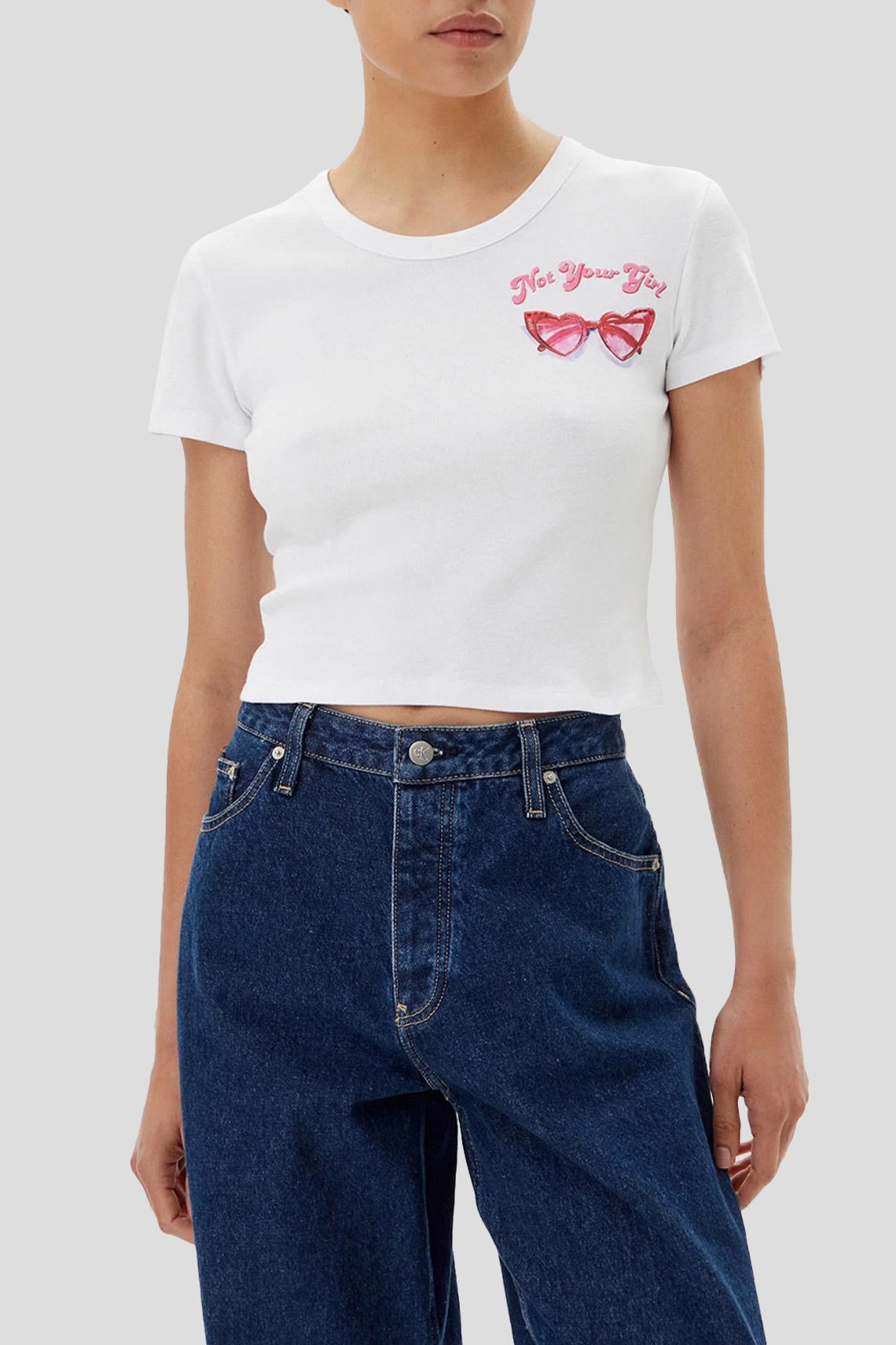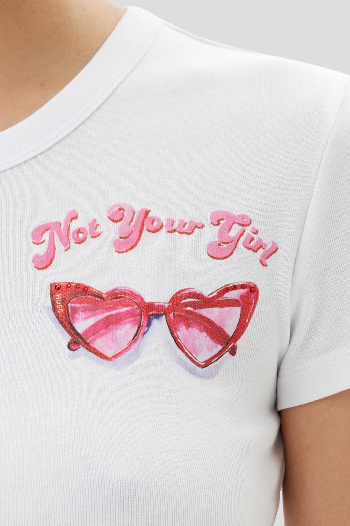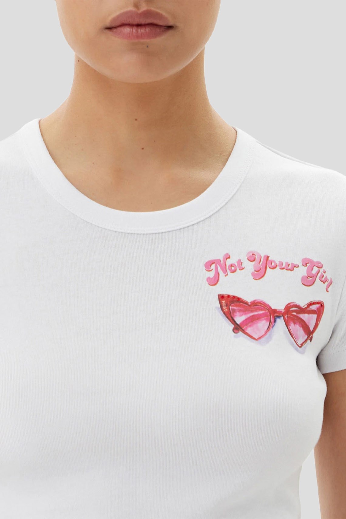 Женская белая футболка Delanor из хлопка от Hugo by Hugo Boss (Хуго бай Хуго Босс). Укороченная длина, круглый вырез горловины, короткие рукава, графический принт на груди