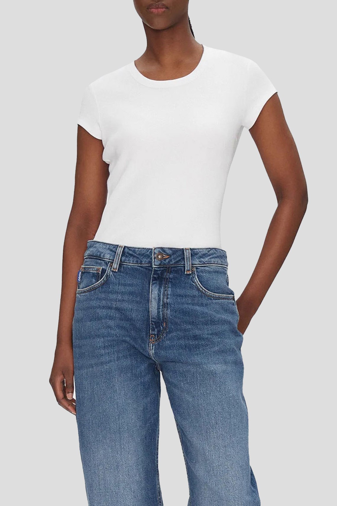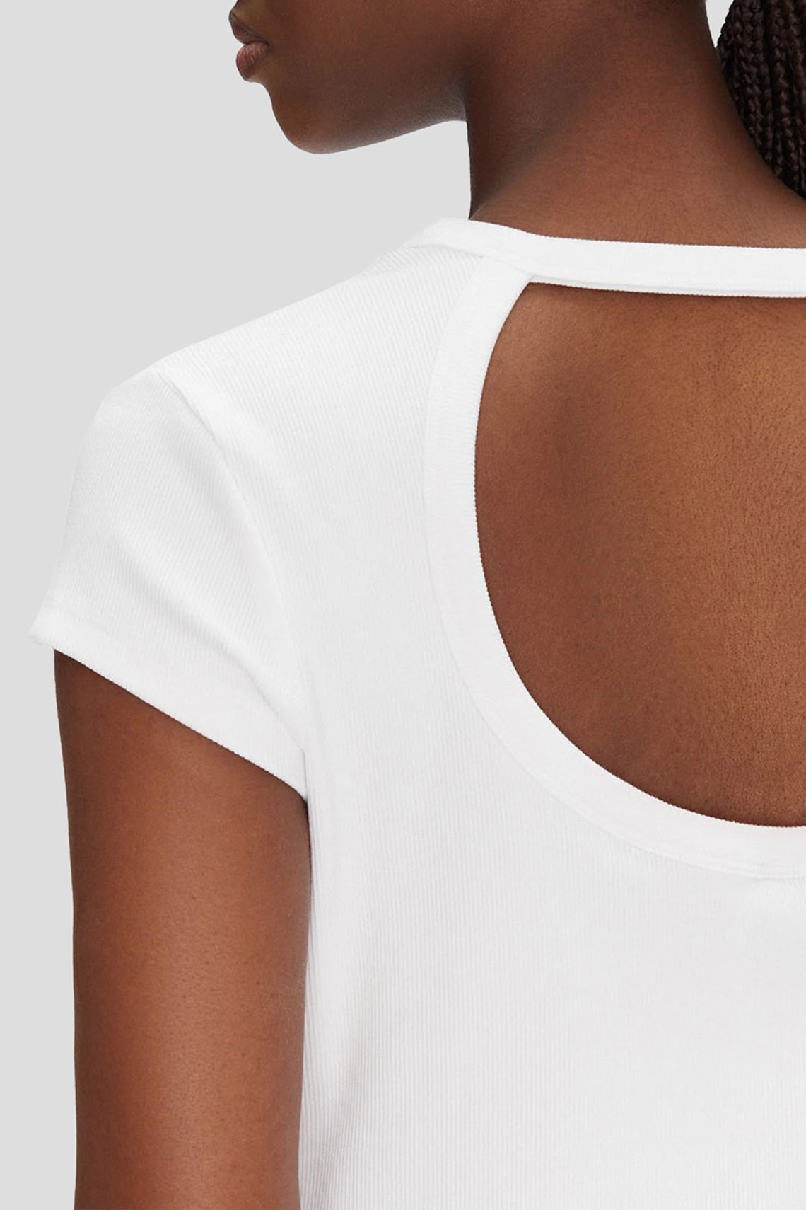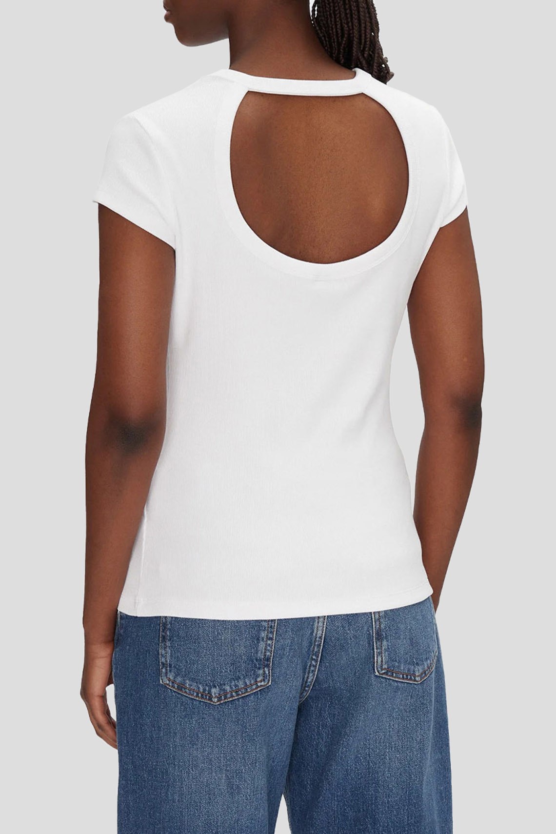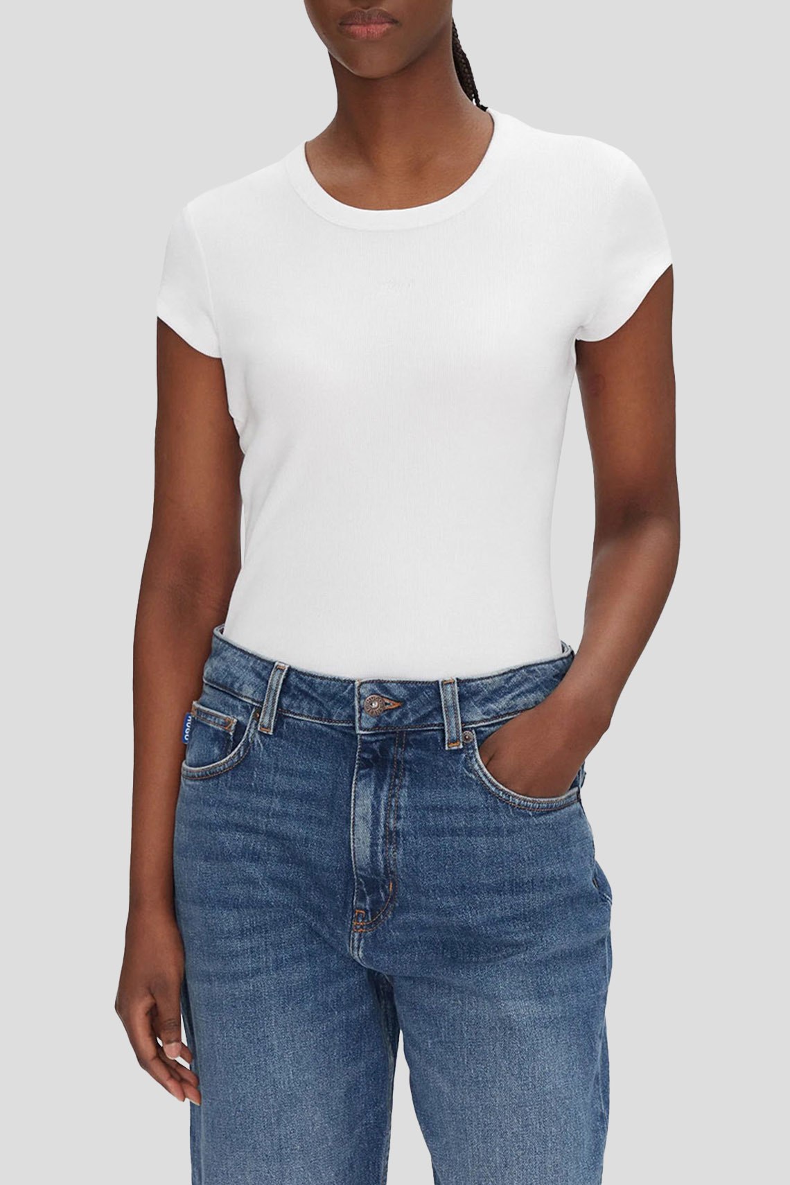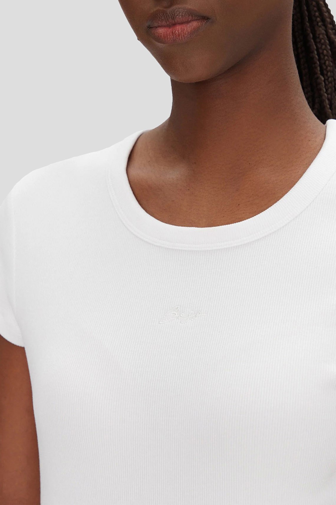 Женская белая футболка из хлопкового микса от Hugo Boss (Хуго Босс). Классическая длина, круглый вырез горловины, короткие рукава, вырез на спине