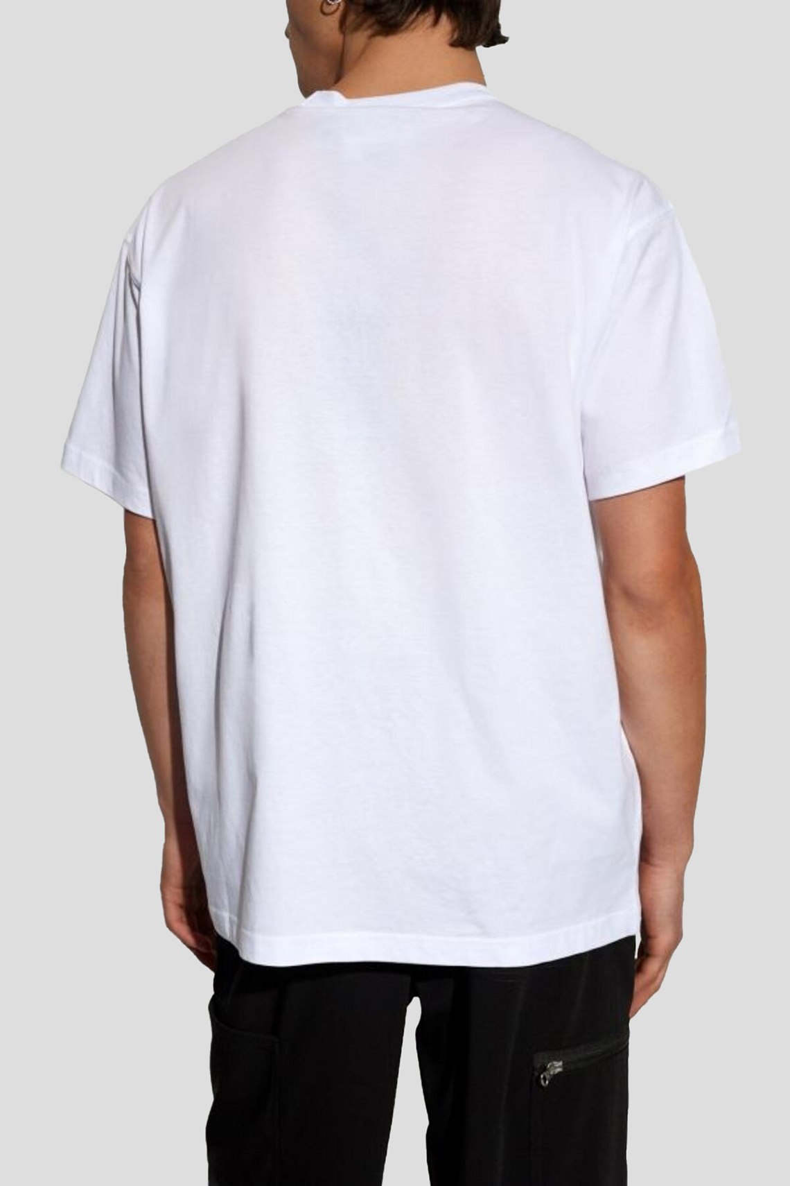 Мужская белая футболка из хлопка от Versace Jeans Couture (Версаче Джинс Кутюр). Классическая длина, круглый вырез горловины, короткие рукава, брендированный принт на груди