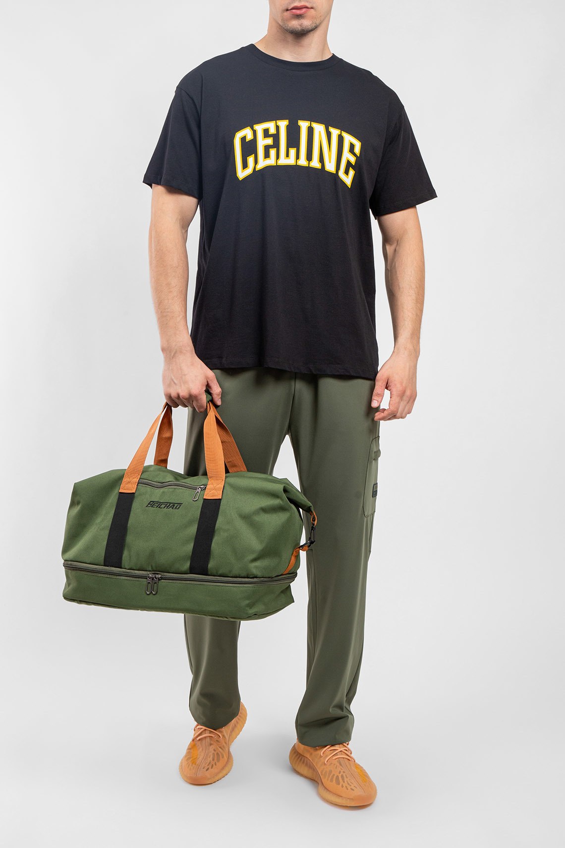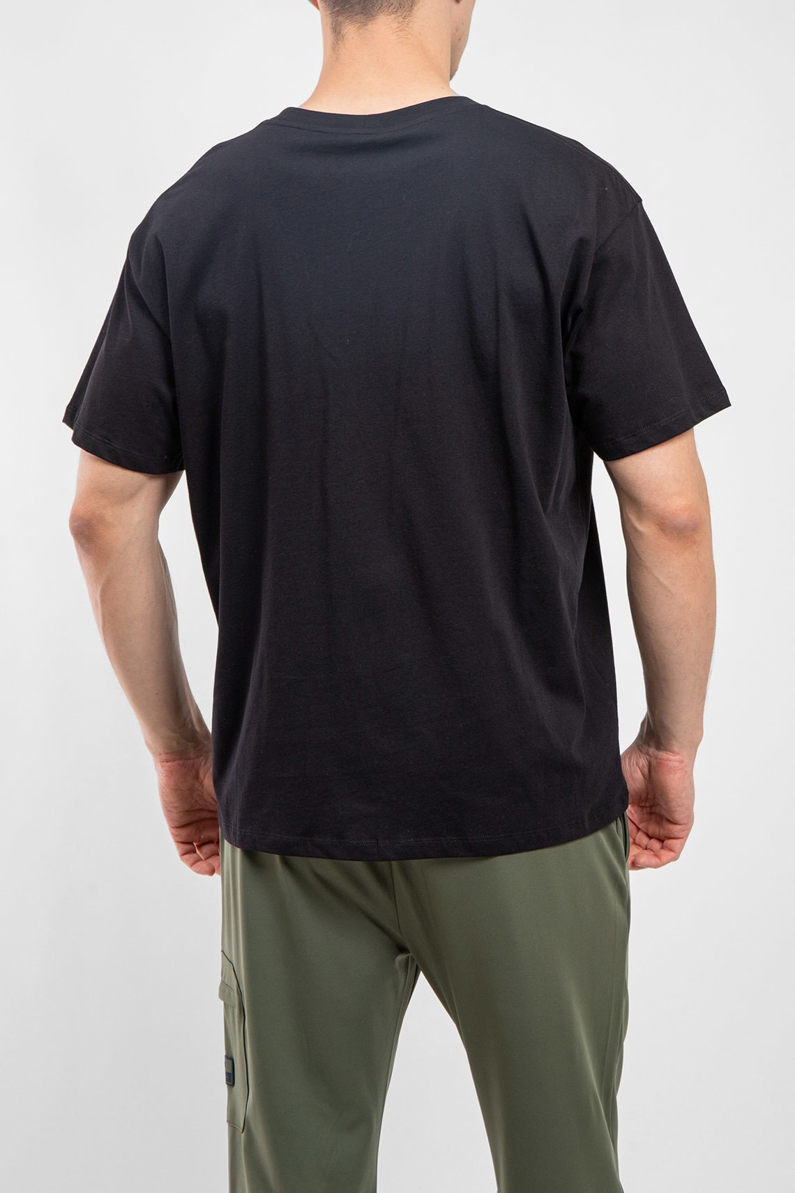 Мужская черная футболка из хлопка от Celine (Селин). Классическая длина, круглый вырез горловины, короткие рукава, брендированный принт на груди