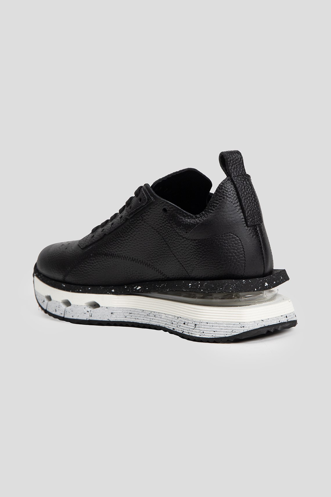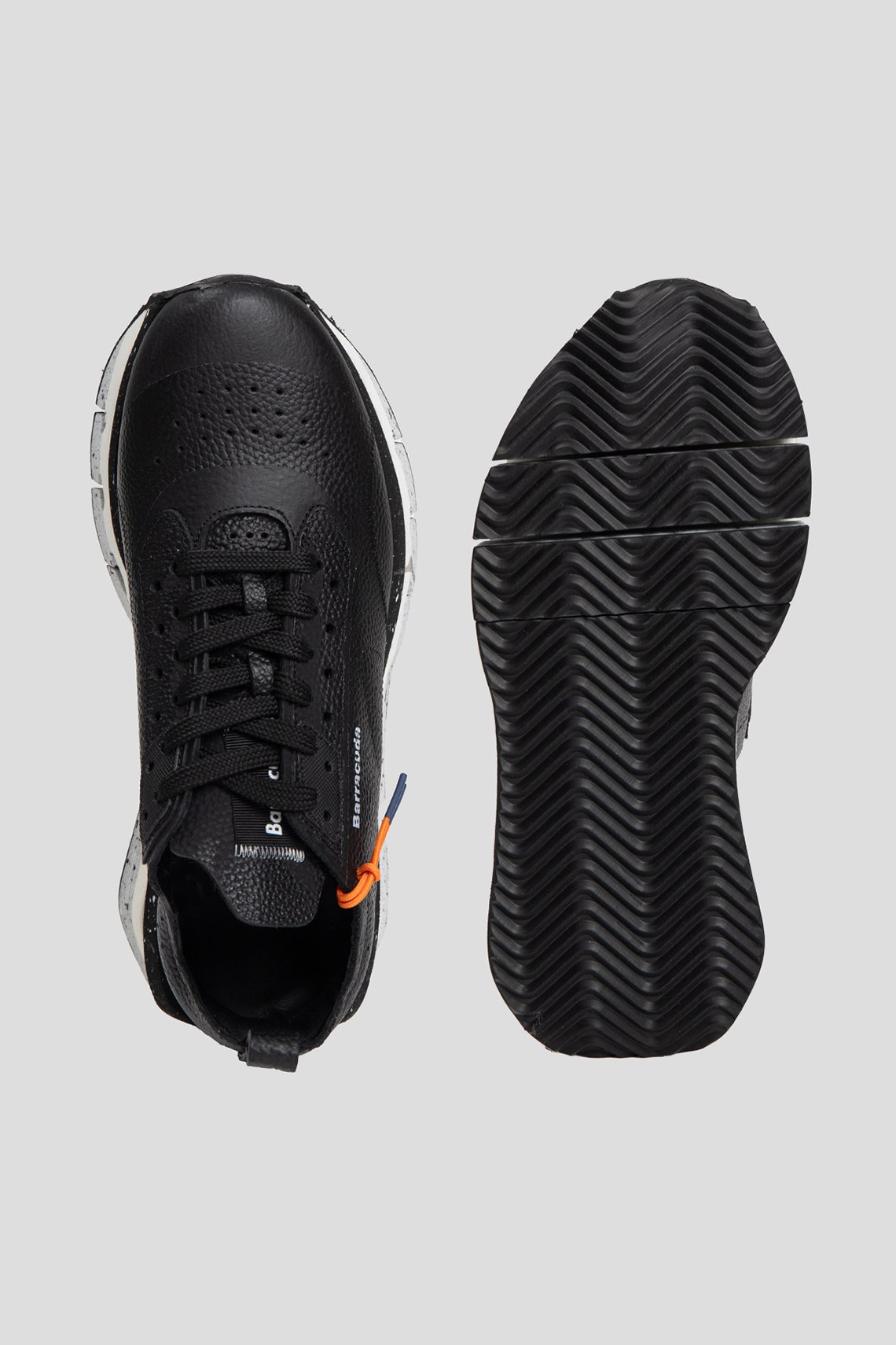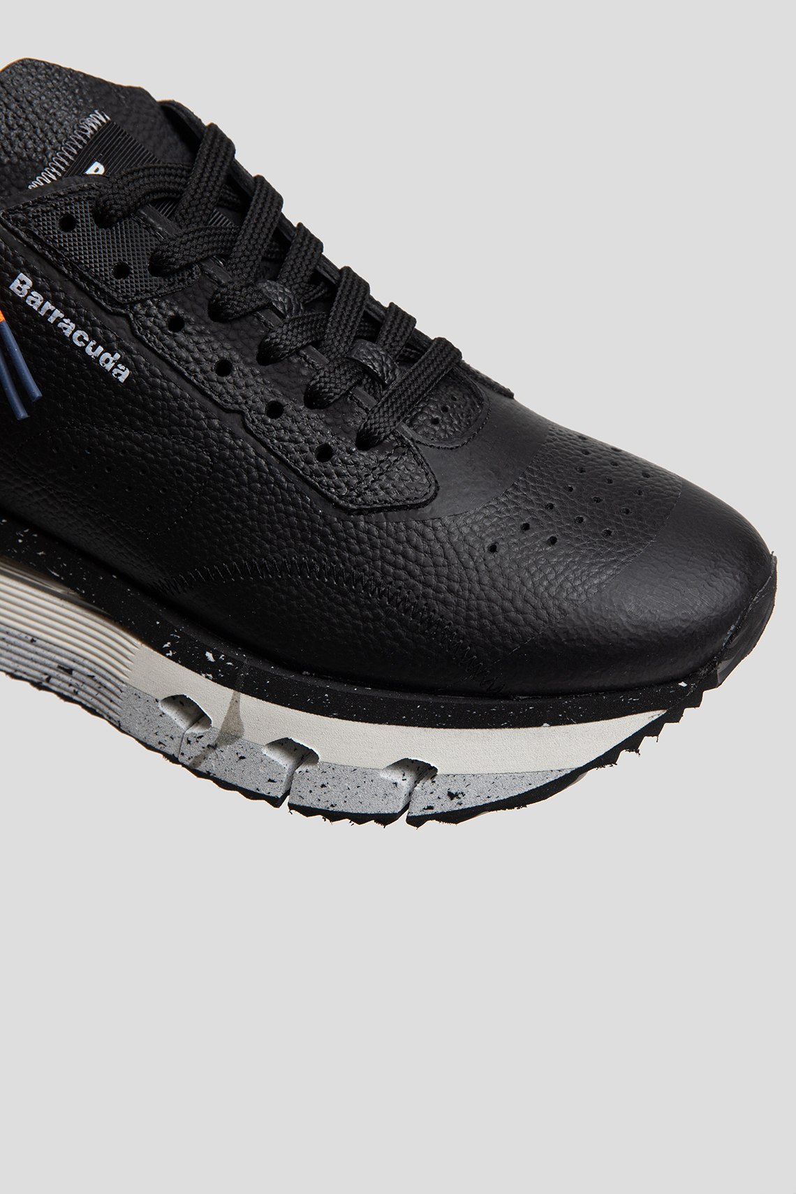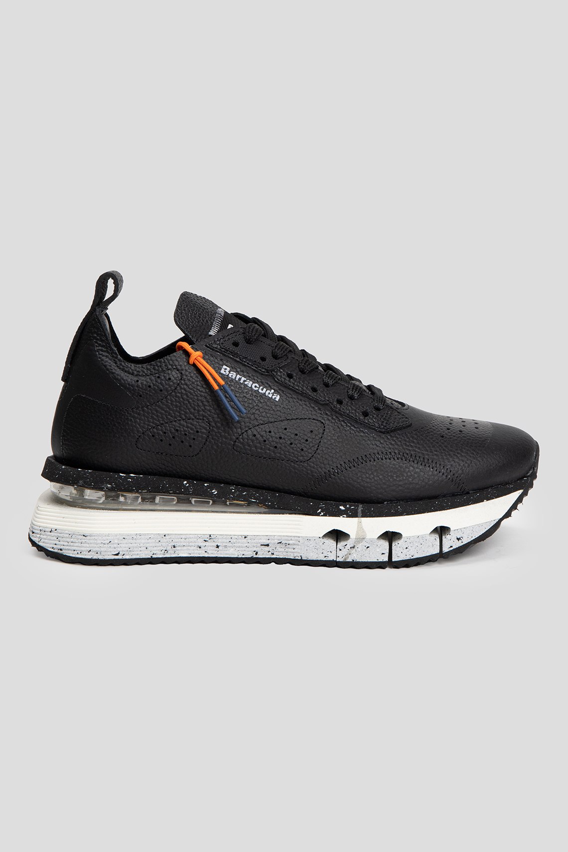 Женские черные кожаные кроссовки от Barracuda (Барракуда). Модель из зернистой кожи, логотип сбоку и на язычке, перфорированные элементы, классическая шнуровка, петля для подтягивания сзади, закругленный носок