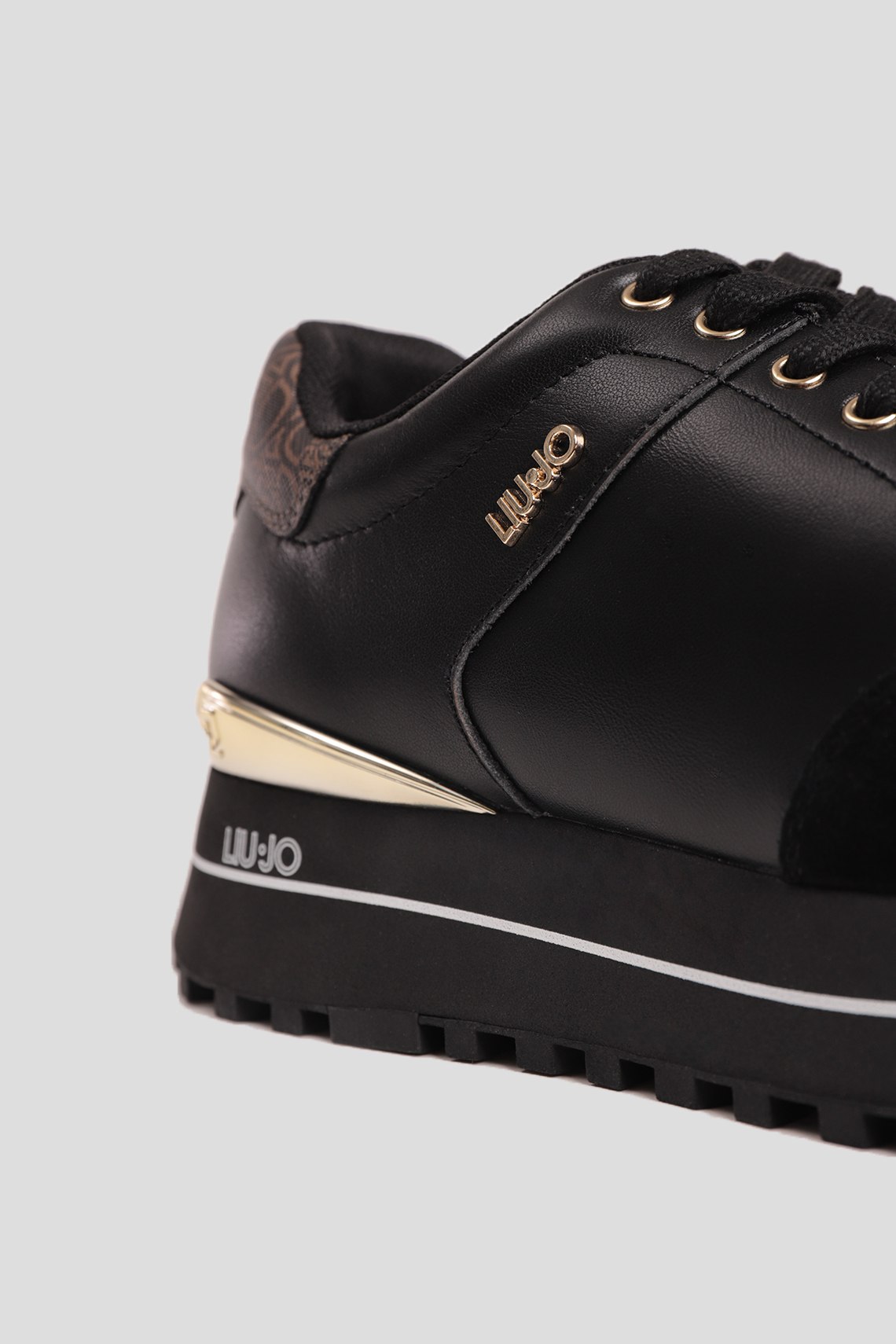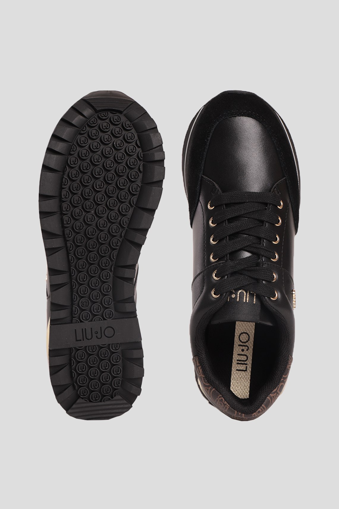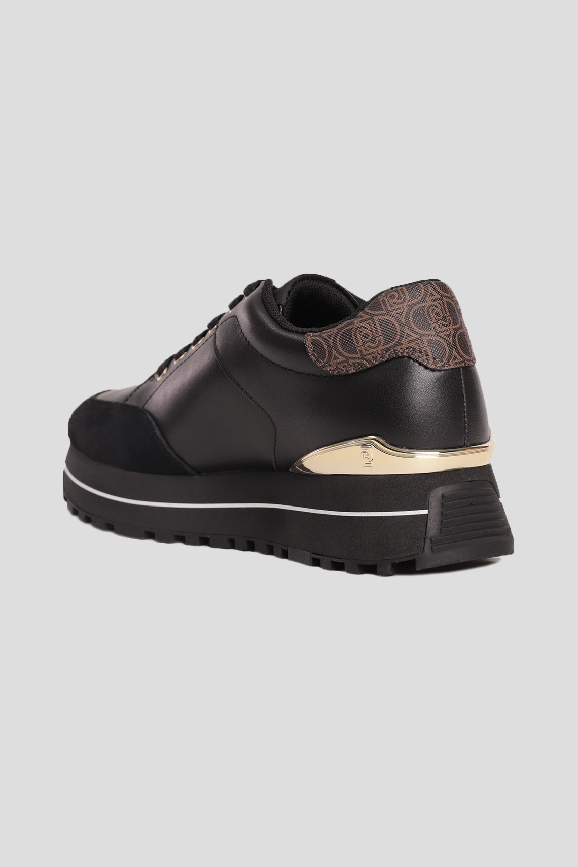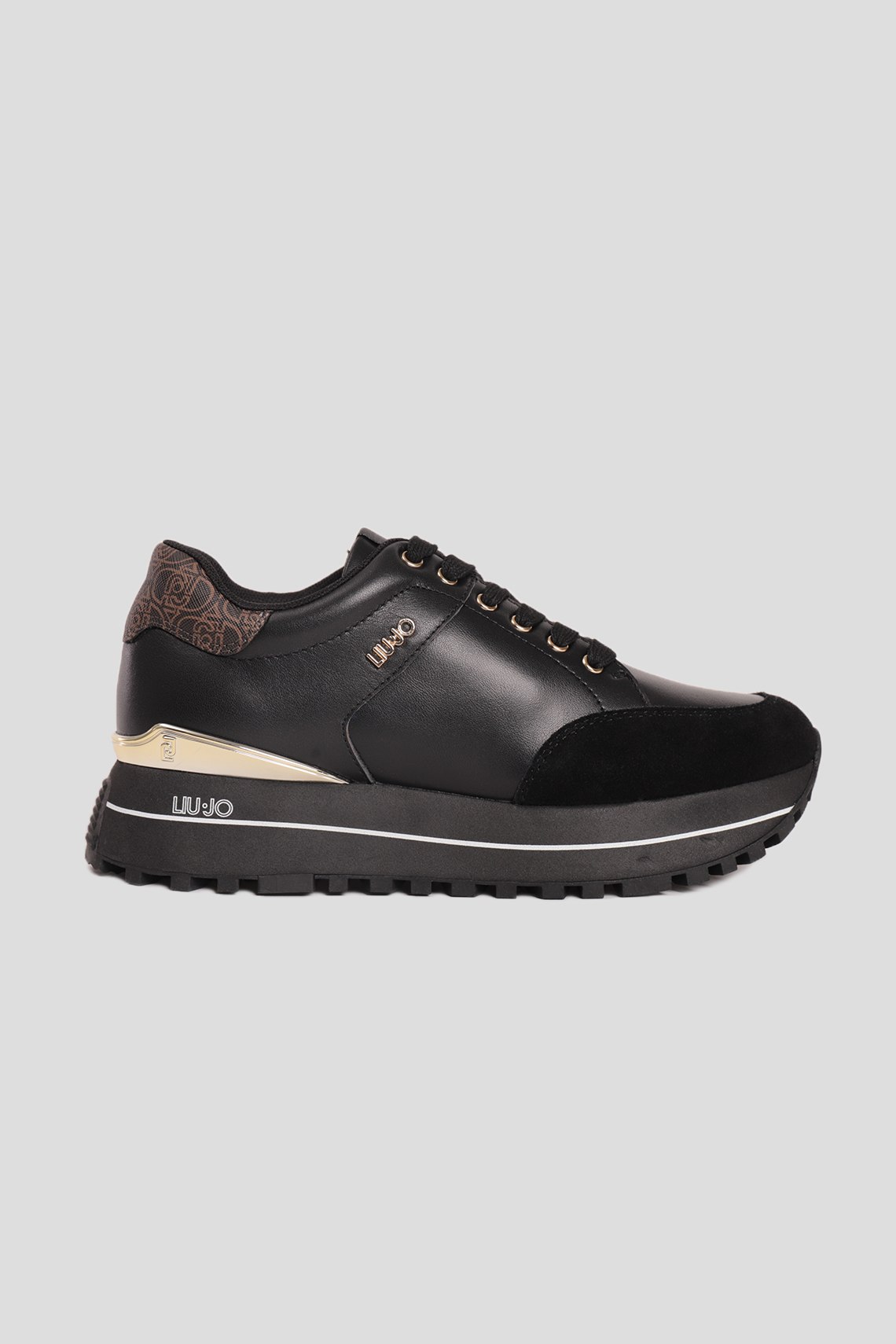 Женские черные кожаные кроссовки от Liu Jo (Лиу Джо). Модель из гладкой кожи, замшевые вставки, логотип сбоку и на язычке, классическая шнуровка, закругленный носок