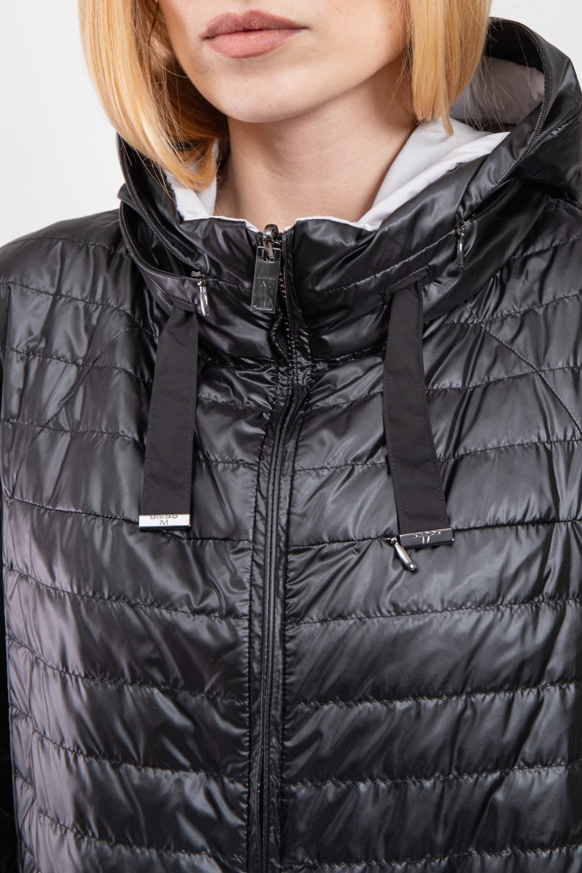 Женская куртка из полиэстера от Diego M (Диего М). Стеганый двухсторонний дизайн, одна сторона черного цвета, другая светло-серого, высокий воротник-стойка, застежка на молнию, прорезные карманы, вшитый потайной капюшон, модель утепленная миксом из пуха и пера. Размер вещи на фото:48 длина: 65 см, ширина по груди: 59 см, ширина по талии: 60,5 см, длина рукава по внутреннему шву: 45 см, ширина рукава: 20 см.