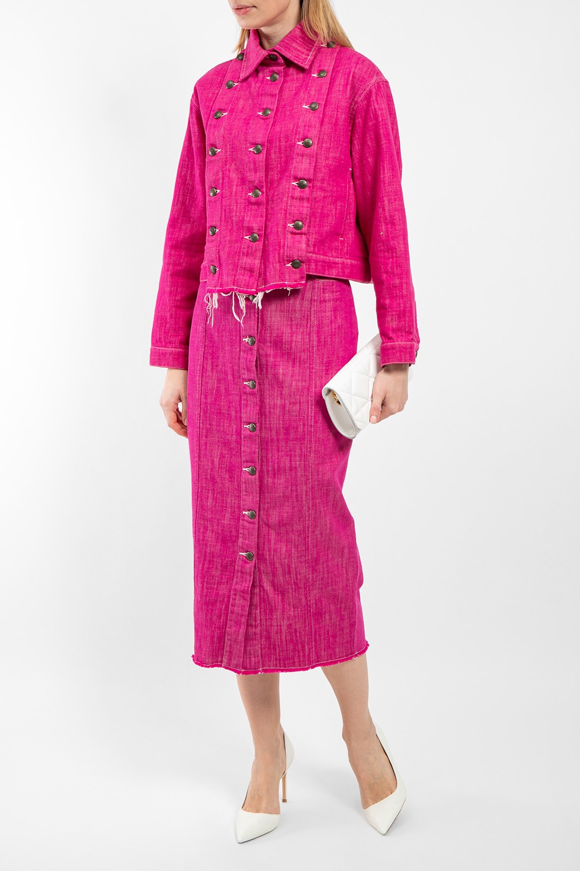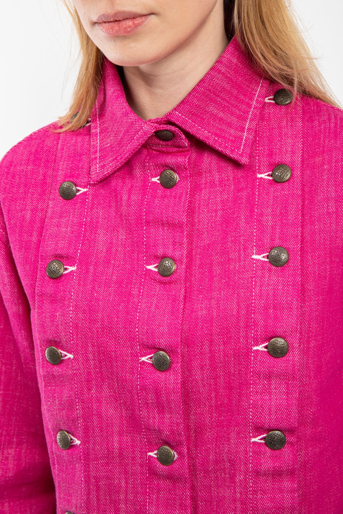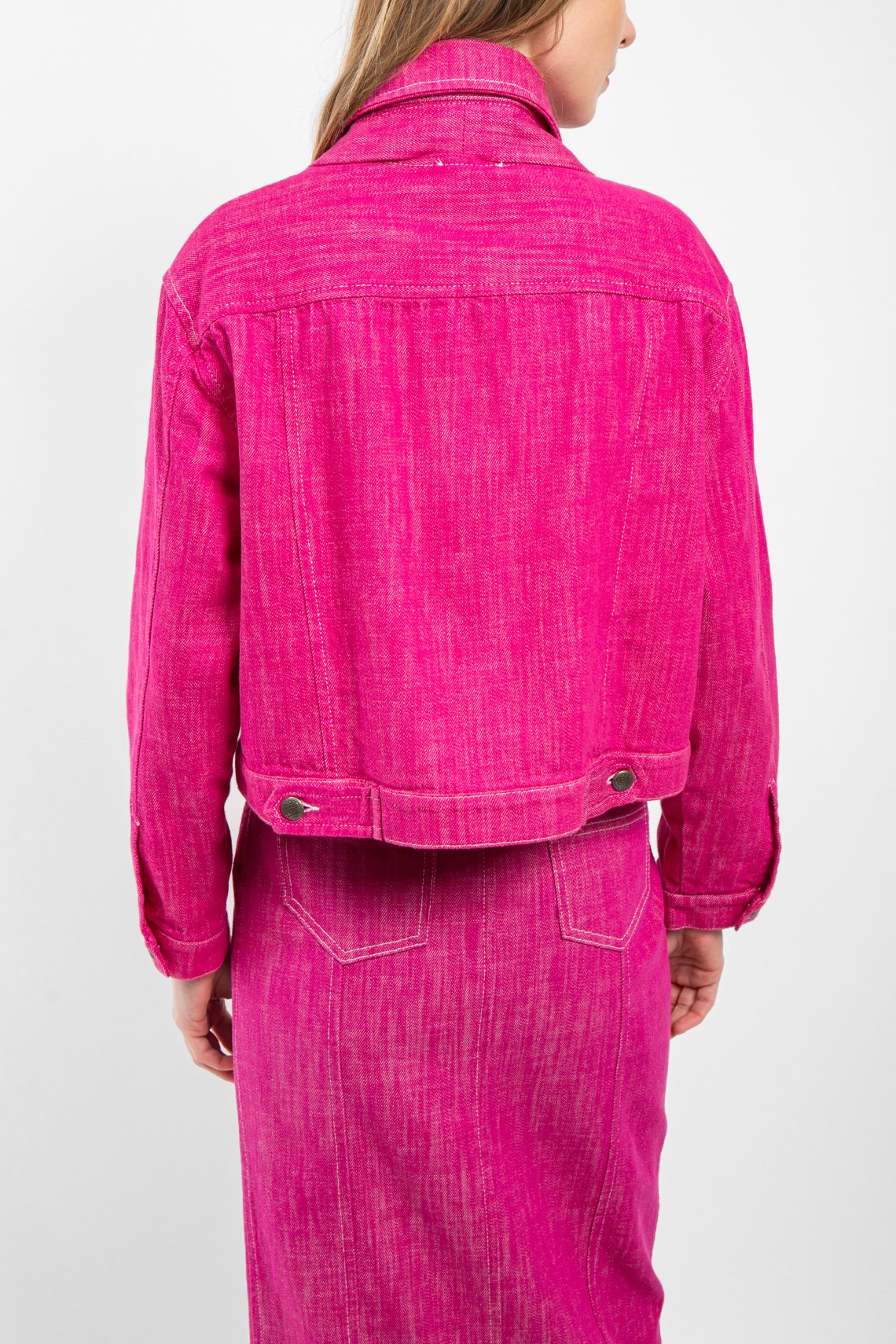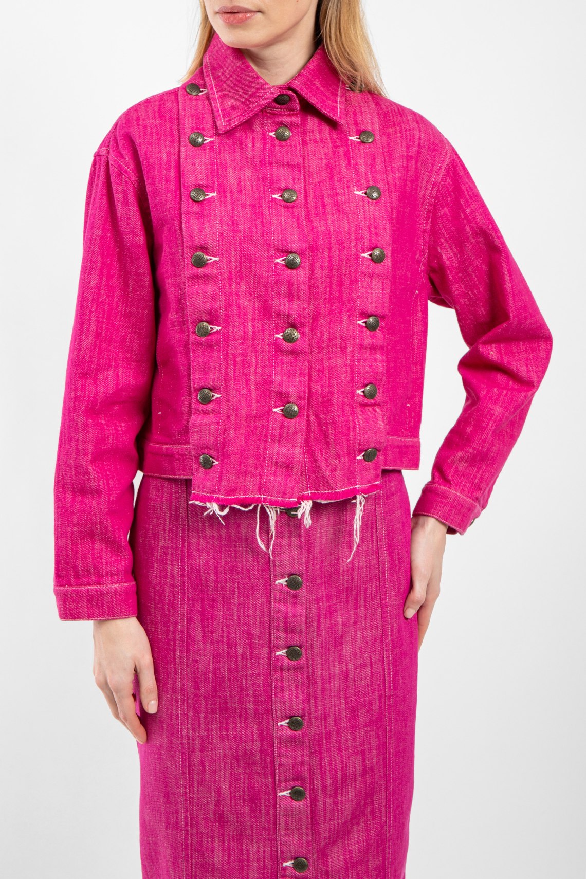 Женская джинсовая куртка цвета фуксии Arlin от Balossa (Балосса). Отложной воротник, три ряда с пуговицами, боковые карманы, необработанный нижний край спереди, манжеты на пуговицах