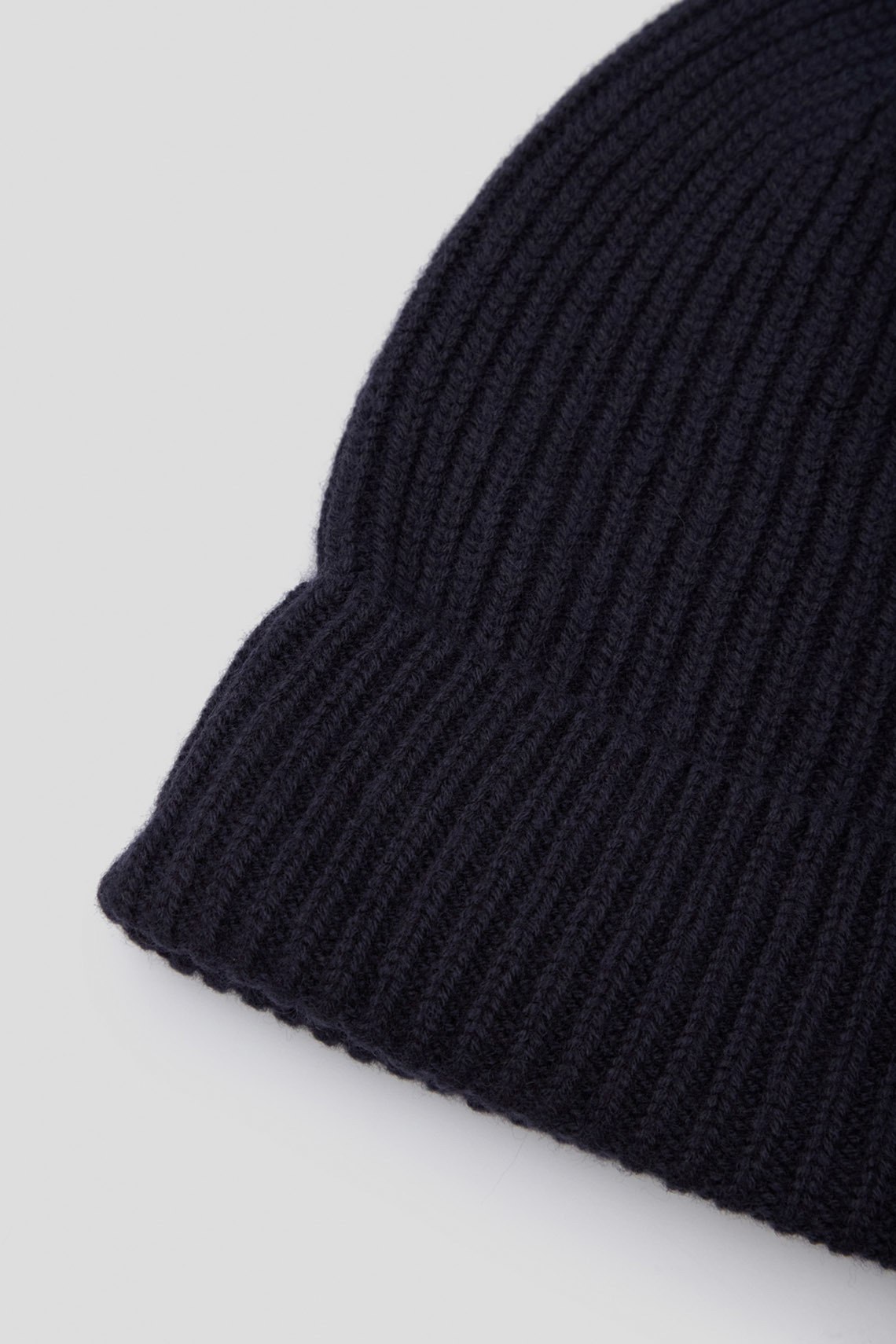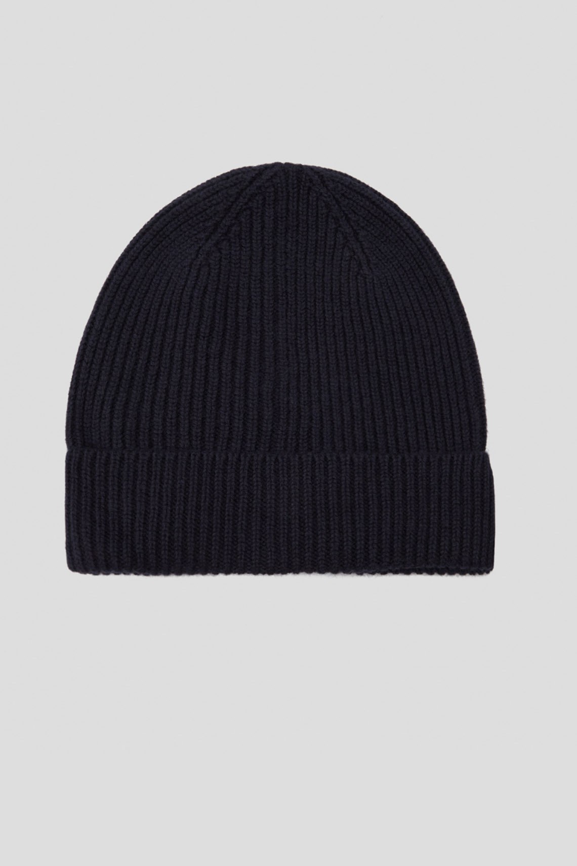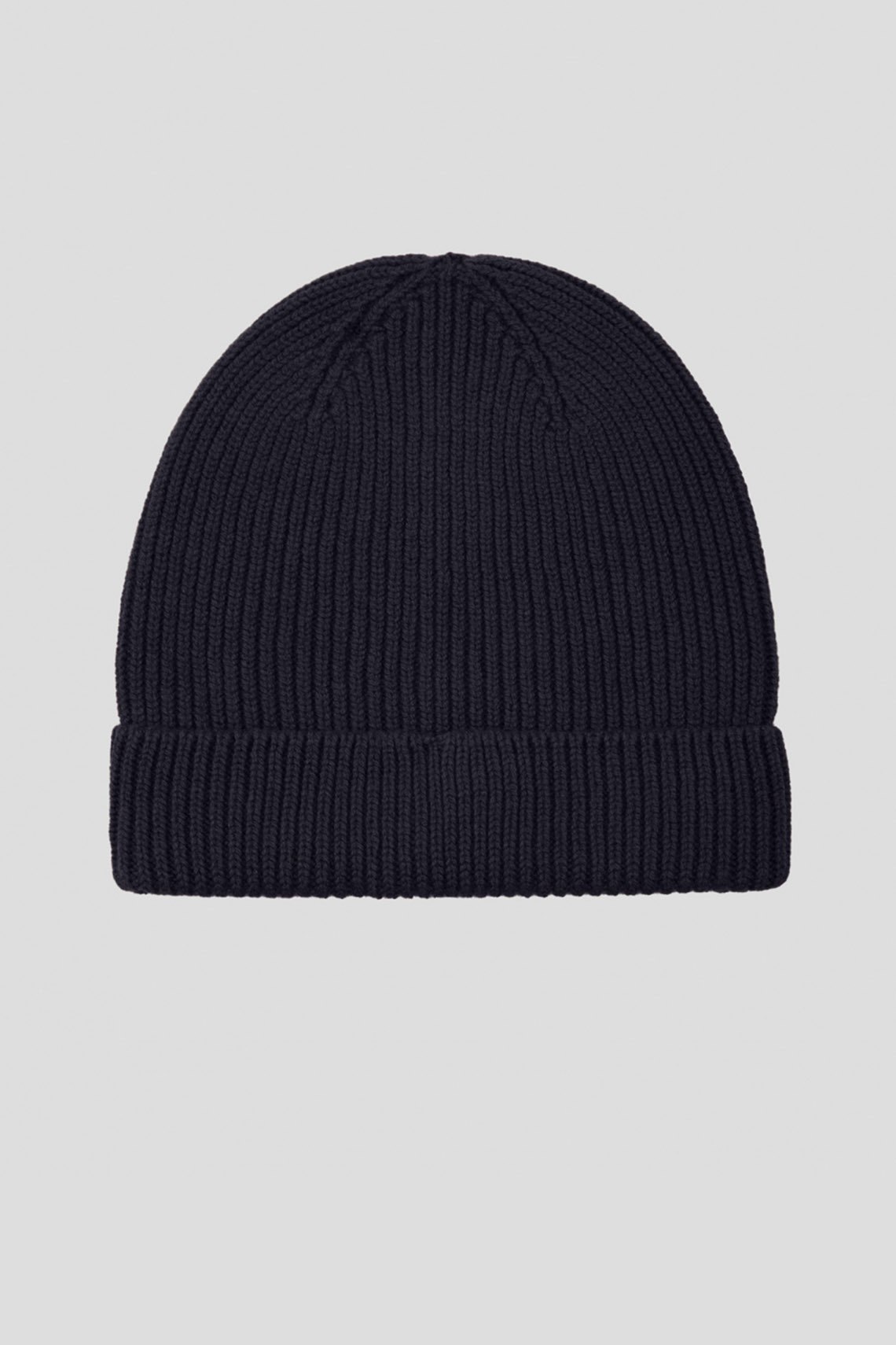 Женская темно-синяя шапка из шерсти мериноса от Maerz (Маерз). Модель бини, дизайн с отворотом, диаметр: 22 см