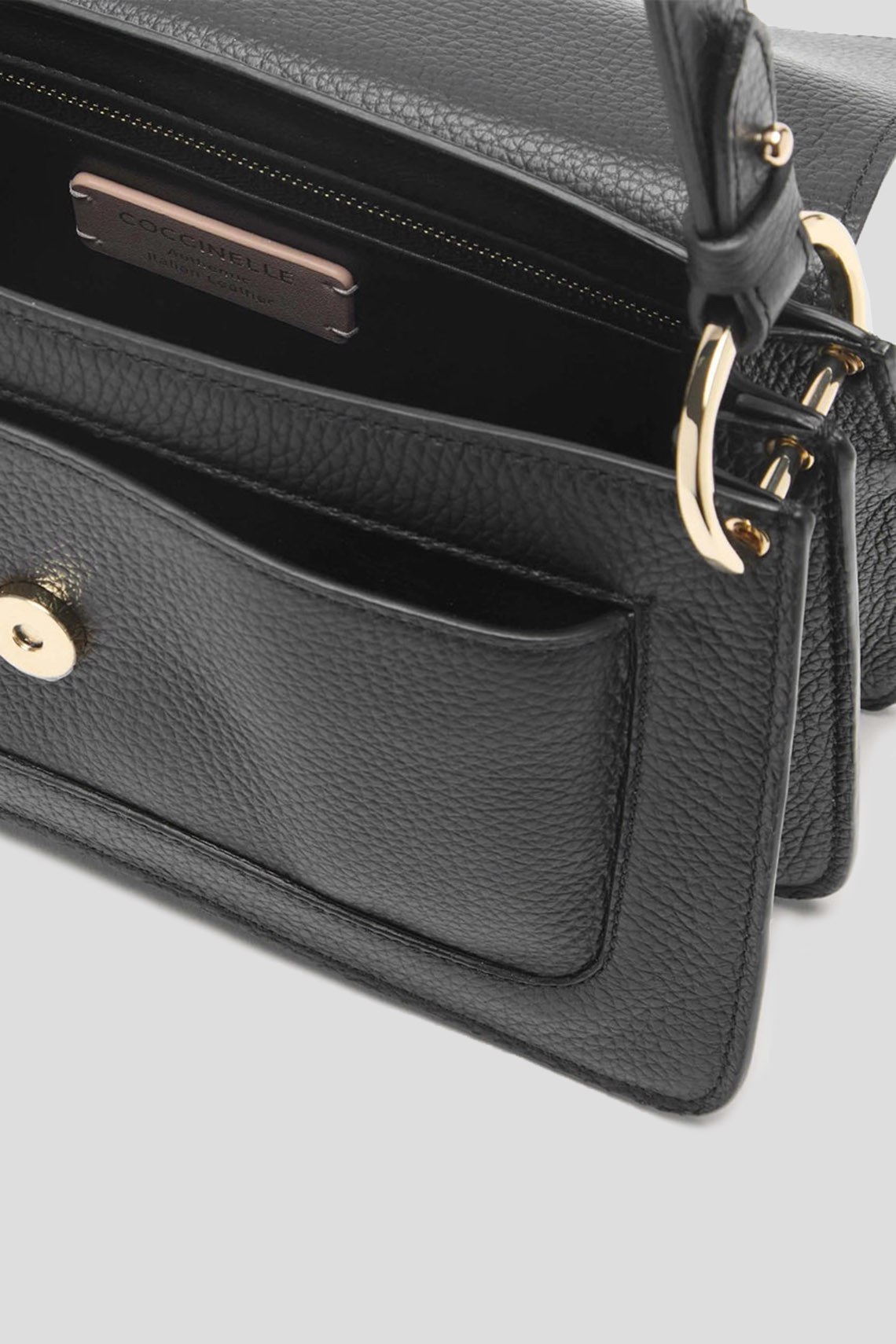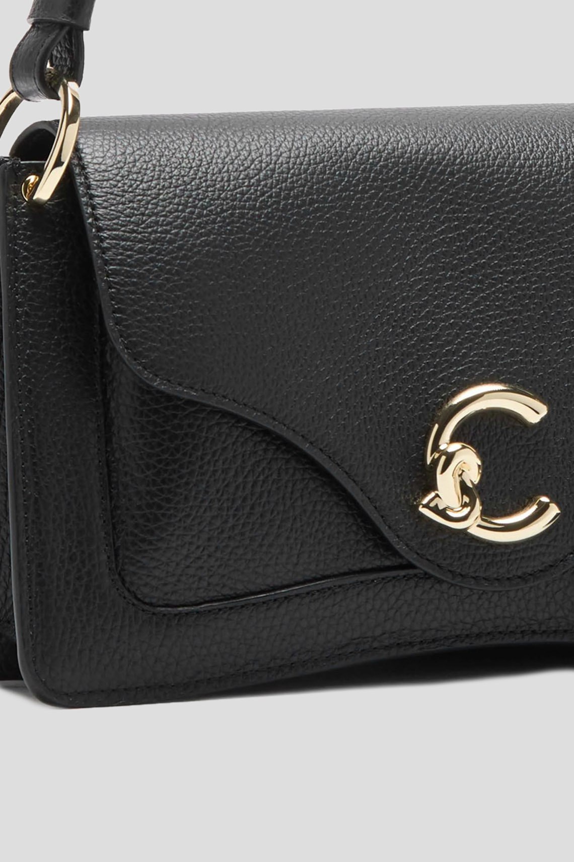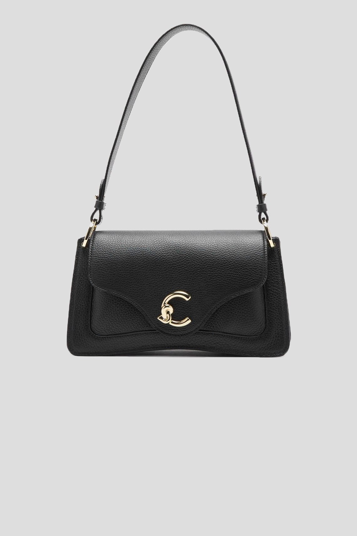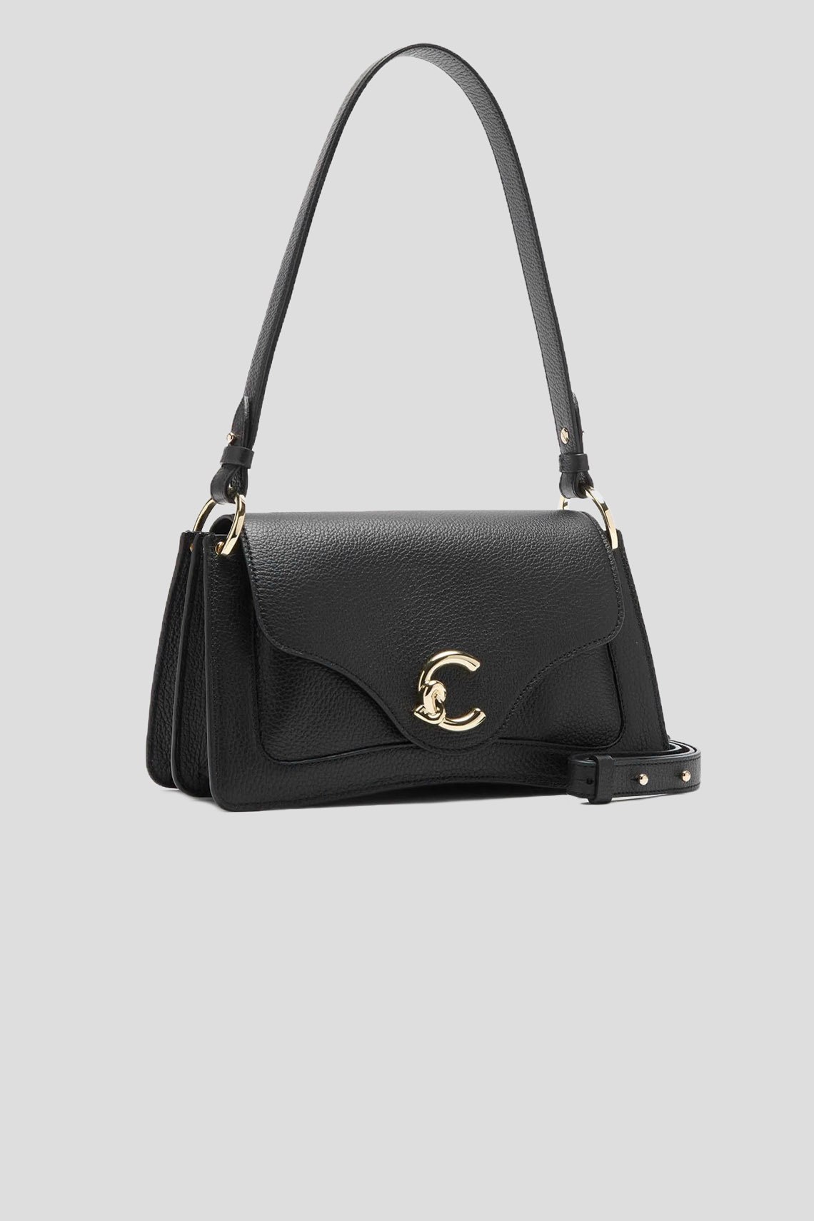 Женская черная сумка на плечо из натуральной кожи от Coccinelle (Кочинелле). Одно отделение, дизайн с клапаном, внутренний карман на молнии, металлическая фурнитура золотистого цвета, внешний карман, верхняя ручка, съемный плечевой ремень. Размеры: 25 см x 16 см x 9,5 см