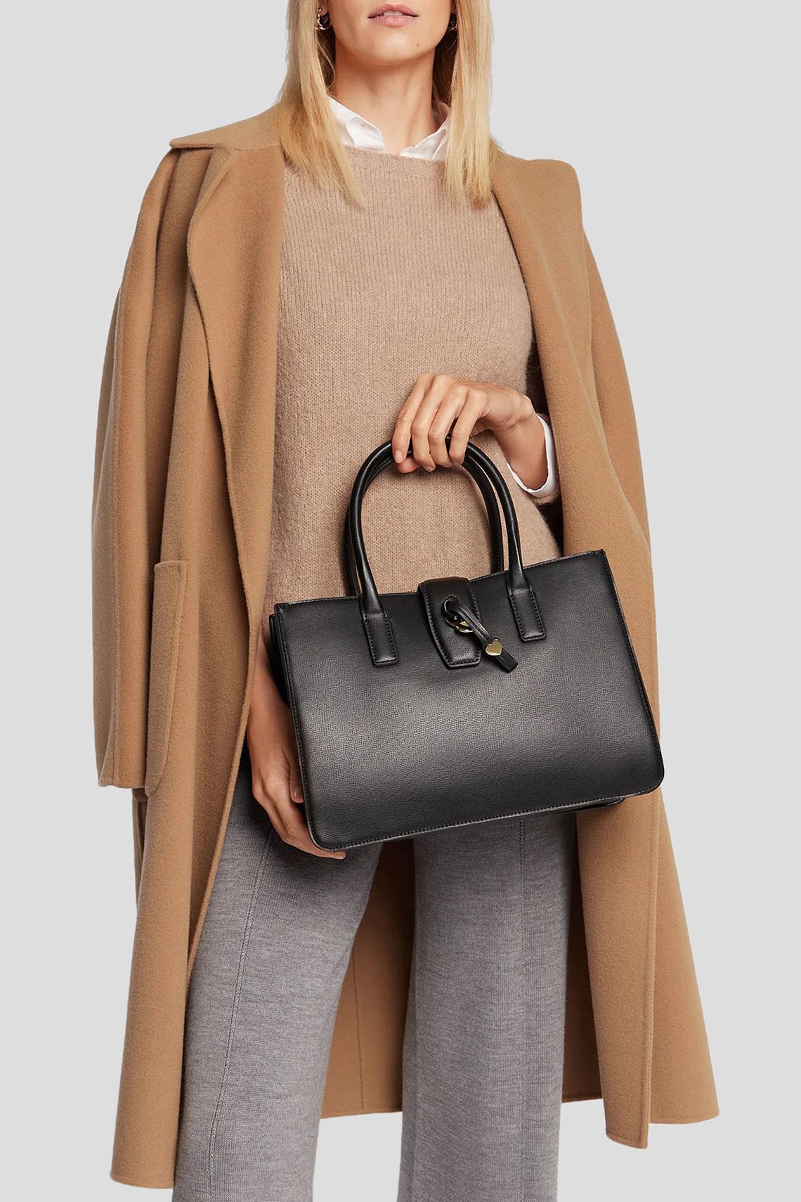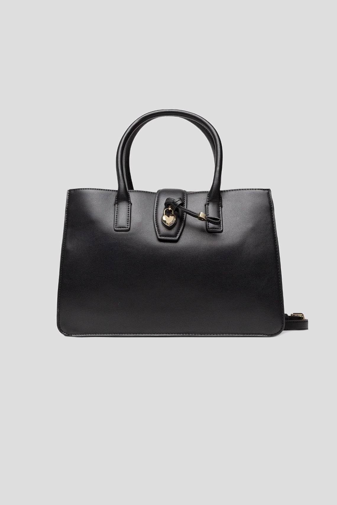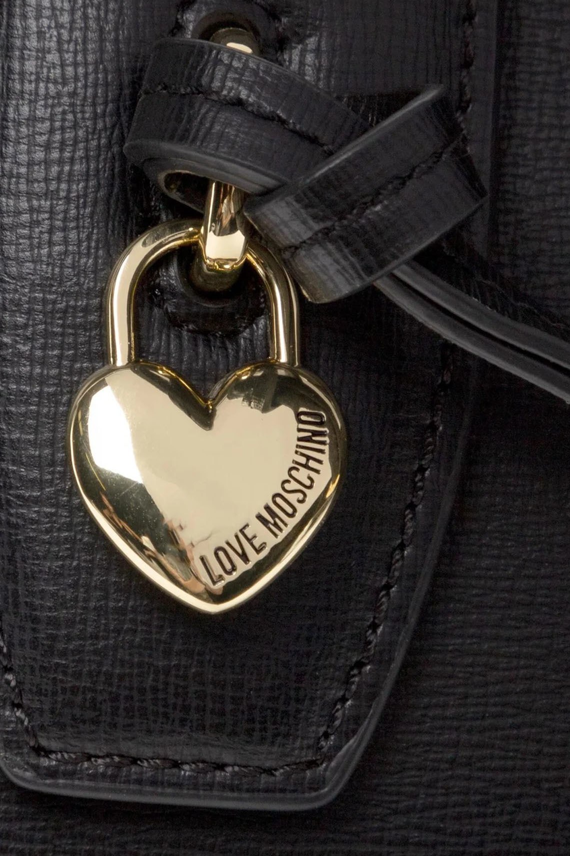 Женская черная сумка-тоут из экокожи от Moschino (Москино). Подвеска с сердечком, золотистая фурнитура, две круглые ручки, съемный плечевой ремень, одно отделение. Размеры: 32,5 х 23 х 14 см. Высота ручки: 13 см. Максимальная длина ремешка: 112,5 см