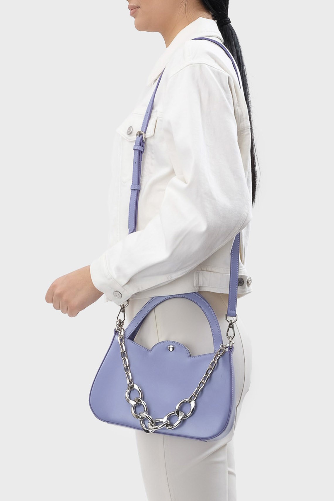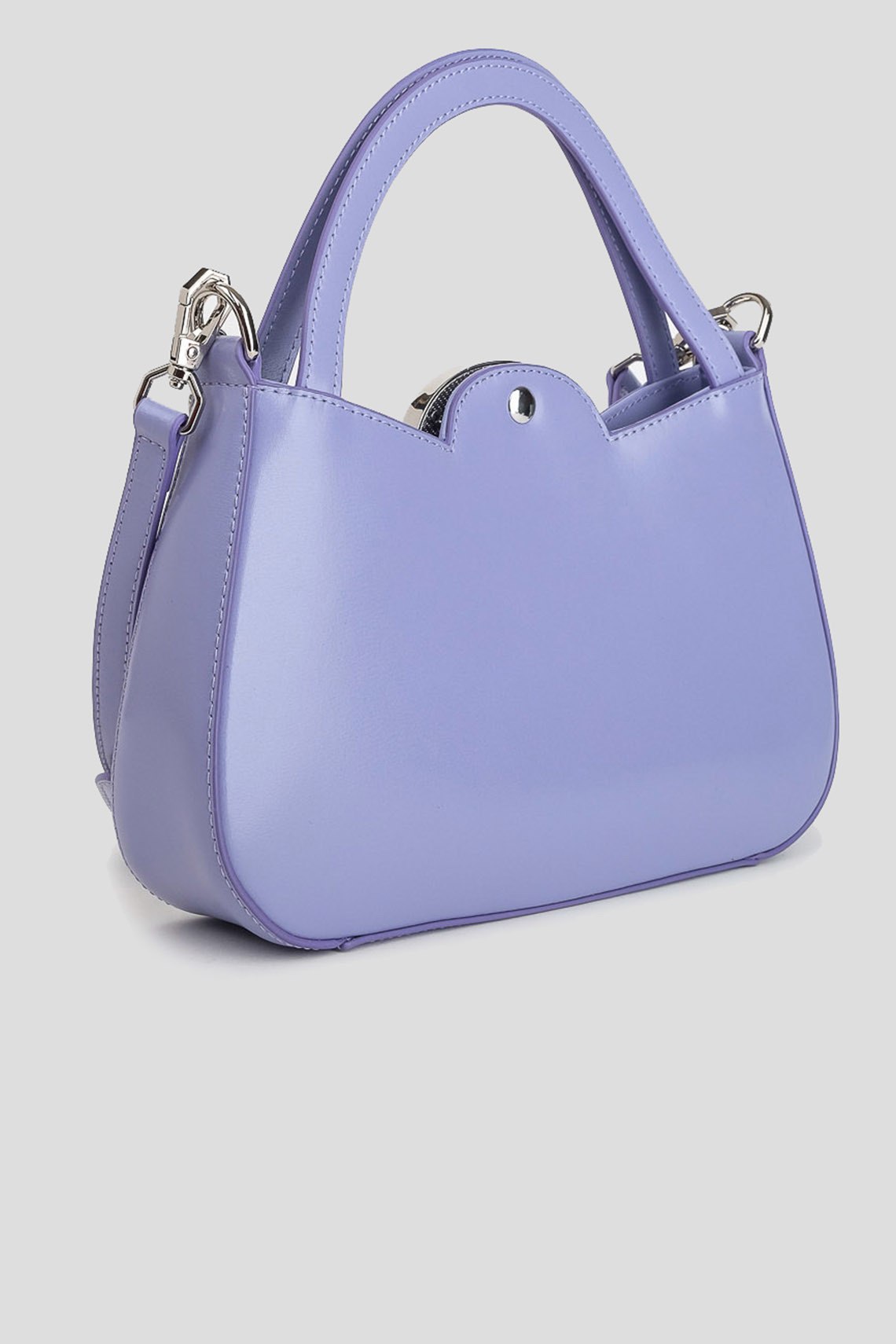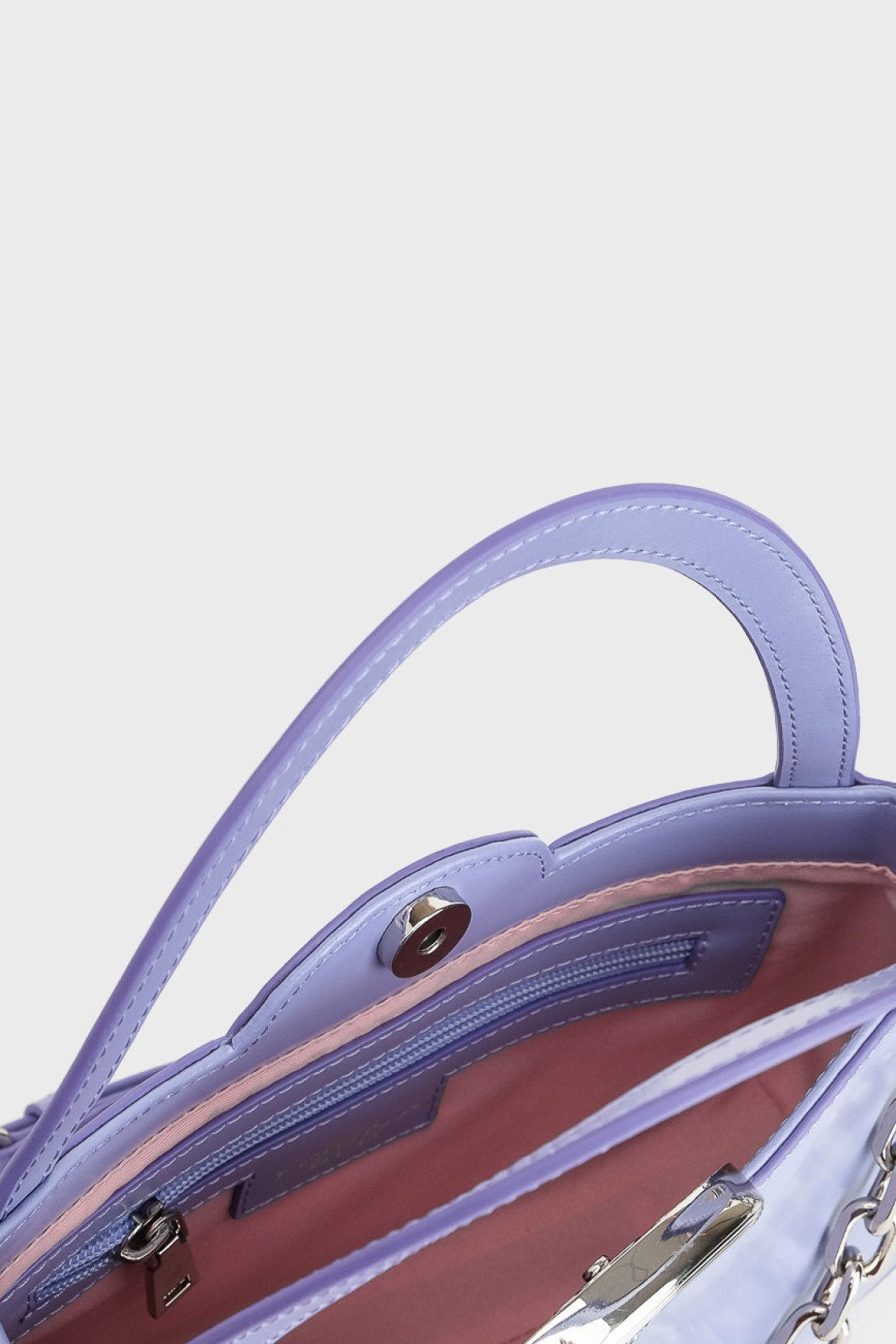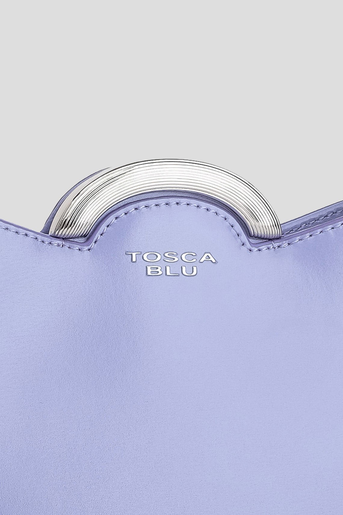 Женская сиреневая сумка-тоут из натуральной кожи от Tosca Blu (Тоска Блу). Два отделения, застежка на кнопку, внутренний карман на молнии, две верхние ручки, металлическая фурнитура серебристого цвета, логотип бренда, съемный плечевой ремень